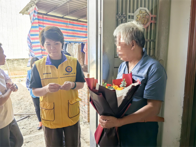 入户走访是本次活动的另一项重点。会员们带着诚意走进学生家中,实地了解其生活与学习环境,倾听家庭实际需求。此次走访中,汇爱服务队特意为每名学生准备了小惊喜——当文具礼包、书籍等礼物递到孩子手中时,他们的眼中闪烁着意外与喜悦,稚嫩的脸上绽放出笑容。此外,会员们还为每位家长送上了一束鲜花。在温馨的氛围里,孩子们认真写下对家人的心里话,或是简单的一句“爸妈辛苦了”,或是“谢谢大伯母一直照顾我!”,纸短情长间,家庭的温暖在方寸间流淌。许多家长接过卡片时红了眼眶,朴素的情感表达让现场更添温情。