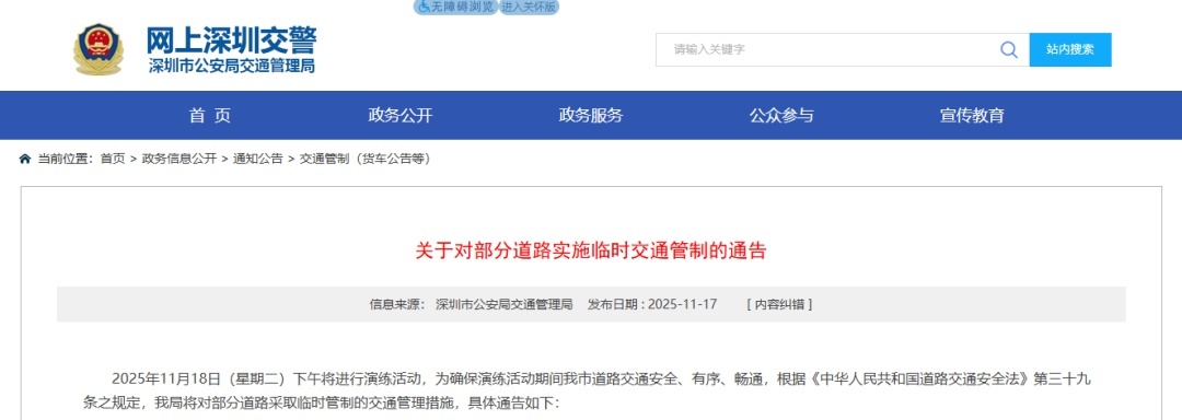 对广深沿江高速(前海收费站至大铲湾收费站)双向路段实行临时管制措施,并根据周边区域交通运行情况,对沿线相关路段实施流量控制,减少演练活动周边道路的交通压力。