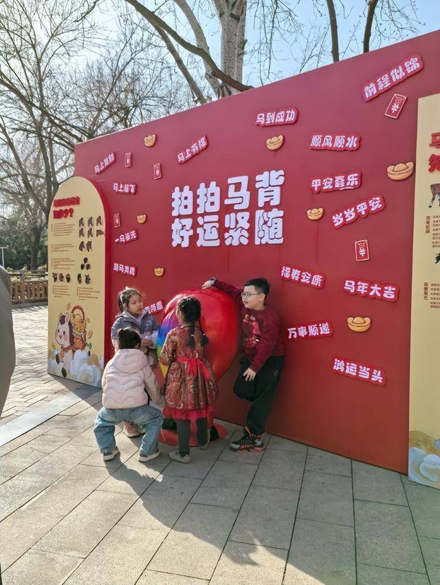 春节期间,郑州市动物园科普公益课堂将持续开展马年生肖文化保护教育活动,带游客朋友们读懂马、了解马,在游玩中感受马文化的深厚底蕴。为增加游园的趣味性和互动感,在大门内广场、草食区、猴山分别设置了“马年转好运”幸运大转盘、“拍拍马背,好运紧随”、“马上封侯”等特色互动打卡点出,春节期间将成为游客打卡的热门“点位”。
